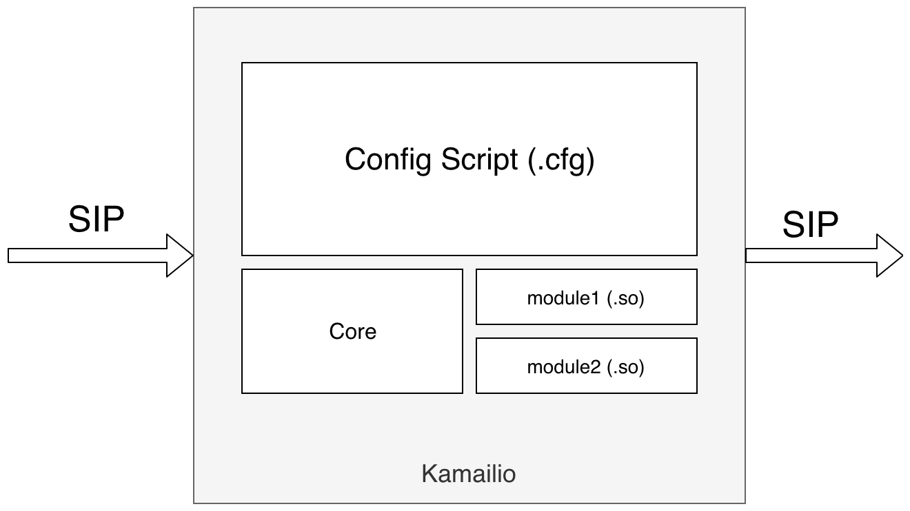 Kamailio has a very efficient C core and it is easily extensible using its modules. Anyone can write a Kamailio module, plug it and use it from the main Config Script (.cfg) logic.